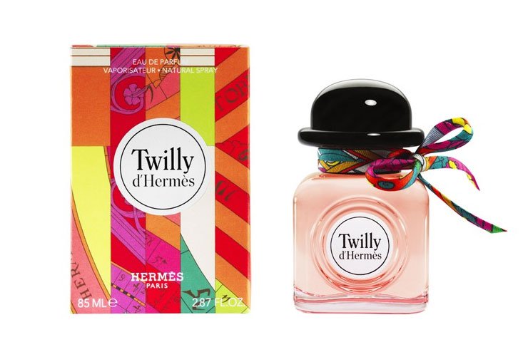 Ed allora la coerenza tra il nome, il fonosimbolismo, le suggestioni semantiche e la personalità del profumo diventa forte. Il profumo Twilly è stato creato per le ragazze, le giovani sbarazzine, audaci e irriverenti. Provoca con leggerezza con il suo spirito un po’ androgino, include nel territorio Hermes con il rimando alla sciarpa, ripreso dal filo di tessuto multicolore che avvolge il collo della bottiglietta di profumo. Colore pesca e bombetta nera, femminile e maschile: mix di contrasti, modernità, cliché.