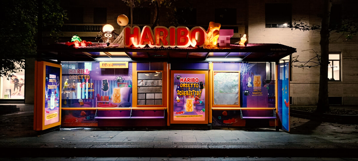 È molto simpatica la campagna Haribo per la festa di Halloween, soprattutto per il suo gioco di parole “Orsetto o scherzetto”. La formula “dolcetto o scherzetto” che in questi giorni e in particolare oggi è il mantra di tanti bambini, viene incamerata da Haribo. Con arguzia il brand personalizza il motto incrociandolo con un’icona del brand, il caratteristico orsetto di gelatina. La parola originaria “dolcetto” in virtù della rima diventa ”orsetto” e il brand Haribo fa goal con la bella trovata.