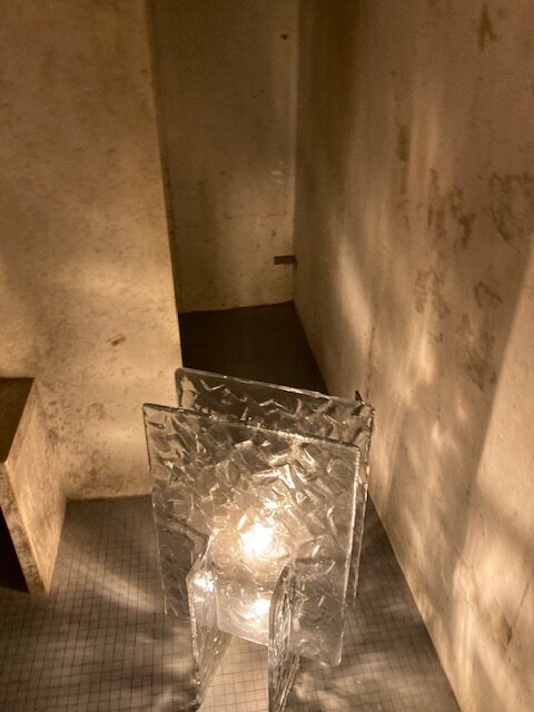 Le opere di 6:AM portate al FuoriSalone erano esposte in uno spazio incredibile: le docce pubbliche costruite sotto la piscina Cozzi negli anni ‘30, dismesse e inutilizzate (se non dai senzatetto) dagli anni ‘70. Un non luogo con una luce e suoni suggestivi, e opere uniche disposte nelle ex docce in travertino.