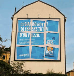 Le immagini sono prese dal sito e dai canali social/Linkedin del brand. Le immagini delle affissioni sono prese da YouMark.