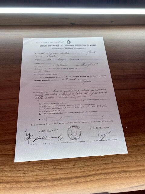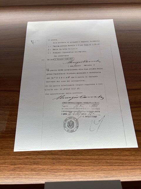 Il desiderio di Nunzio era che la sua impresa alle spalle del bianchetto si chiamasse Cigno, un po’ per il colore bianco, un po’ forse per il simbolismo positivo di questo animale. È dalla Camera di Commercio di Milano dove va per depositare il marchio che viene a sapere che il nome Cigno è già registrato e quindi non può essere usato da lui. Sembra che sia stato proprio l’addetto a suggerire di usare il suo nome e cognome e a creare Nuncas: Nun da Nunzio e Cas da Cassata. A Nunzio il risultato piace ed ecco che viene registrato Nuncas in sostituzione del nome Cigno precedentemente richiesto. Gli atti esposti sono del 1936 e 1937, e sono interessantissimi con tanto di postille, timbri e soprattutto i prezzi: 56 lire! “La parola Cigno […] annullata e sostituita da “Nuncas” che è parola di fantasia derivata dal nome del suddetto”.