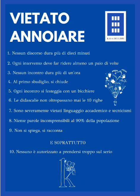 Oltre al Kapannone c’è il Kalendario e la Kollezione permanente con libri del 900, e chissà cos’altro rischia di essere trasformato “letteralmente” con una K. Le iniziative proposte dalla Kasa dei Libri e dal team che la anima sono tantissime, e I libri continuano ad arrivare come fondi, donazioni, acquisti. Le iniziative virtuose attraggono altre iniziative simili, e gli amanti dei libri hanno piacere ad alimentare una fucina così meravigliosa. Sul sito si trovano brevi video di Kerbaker, che con agilità e grande competenza introduce temi e autori mostrando angoli e approcci molto attraenti.